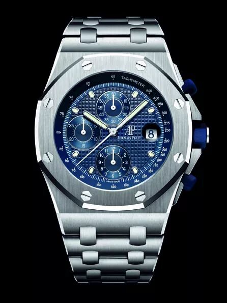 2018年愛彼的其中一項重頭戲將是慶祝誕生25周年的Royal Oak Offshore。作為慶典賀禮,緬懷歷史的復刻版屬指定動作,所以大家會看到一枚參照當年第一枚Royal Oak Offshore而造的的復刻版,直徑42mm鋼殼,藍色細格紋表盤配藍色按鈕,搭載自動機芯。