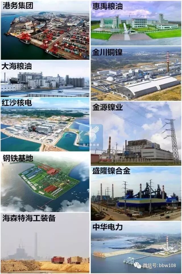 钢铁基地、红沙核电、金川铜镍、盛隆镍合金、海森特海工装备、金源镍业、大海粮油、惠禹粮油、中华电力、港务集团。