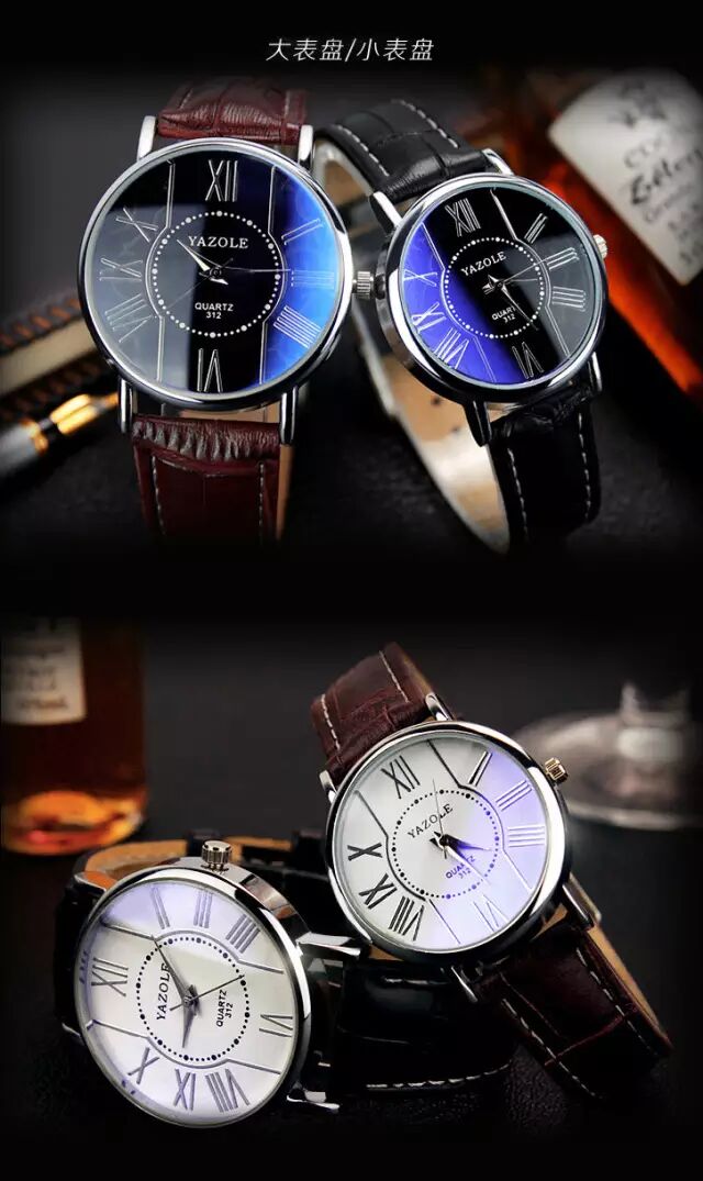 【手表特点】:多色彩多搭配选择,进口蓝光特种玻璃面,透光性更好,镜面在灯光下或者侧面看会出现炫彩蓝光!幻变的蓝色光芒,尊贵大气!薄表盘,柔软表带光泽度好有质感,配戴舒适。生活防水!