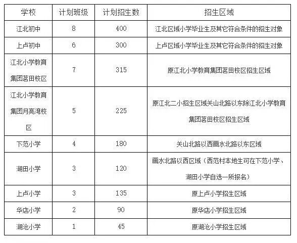 根据本区域实际情况,我区域招生分江北小学教育集团茗田校区与其他中小学两大类条件报名招生。