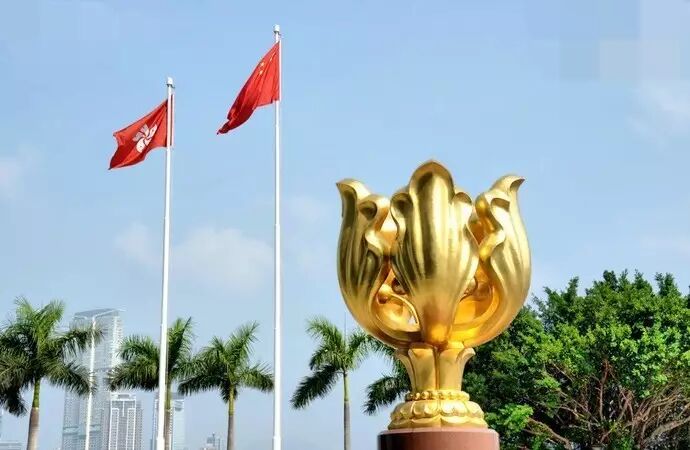 “永远盛开的紫荆花”雕塑-金紫荆雕塑矗立于香港会议展览中心新翼海旁的博览海滨花园内,在广场上每日8点都会有值得一看的升旗仪式。