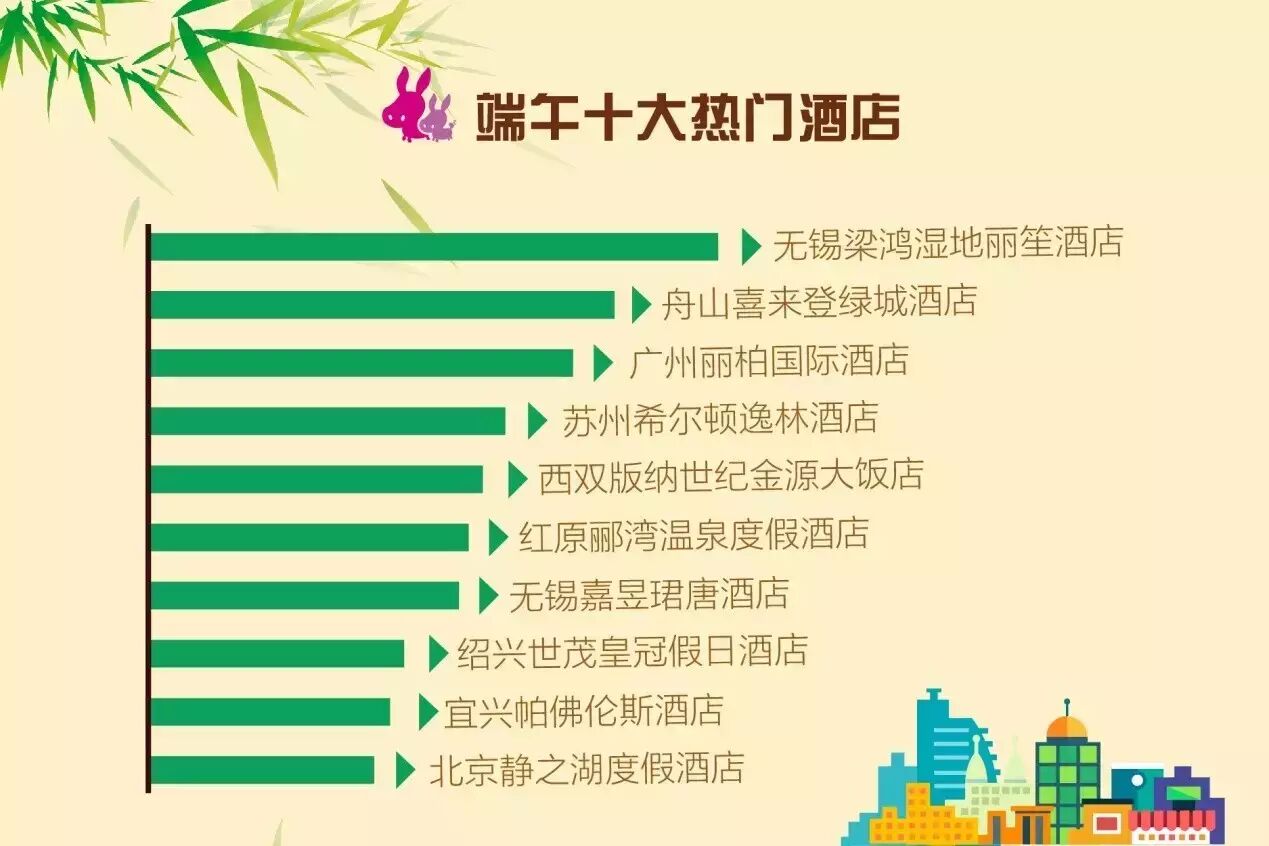 近年来游客对酒店品质的要求越来越高,甚至把酒店当成重要的旅游目的地。驴妈妈端午数据显示,靠近景区、配套设施齐全的无锡梁鸿湿地丽笙酒店、舟山喜来登绿城酒店、广州丽柏国际酒店等最受周边游客人欢迎。
