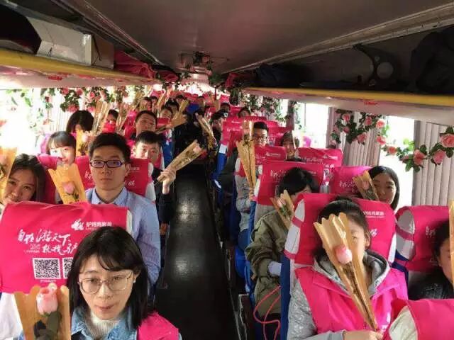 3月18日,在四座城市的指定发车点,“开往春天的神秘巴士”如约发车。不负驴粉们的久久期待,这趟“神秘巴士”之旅让每一位参与的驴粉难以忘怀。一天的行程下来,来自成都的驴粉张女士精挑细选了9张美美的图片发在微信朋友圈,并配文说,“跟着驴妈妈320粉红旅游节神秘巴士一日游,乘坐装满鲜花的巴士赏油菜花逛灌县古镇,免费班车免费午餐免费零食还送大礼包和玫瑰花,简直太棒了!”