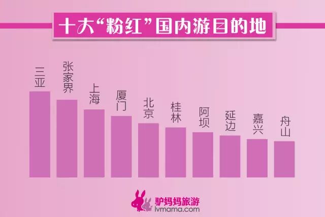国内长线游方面,最具人气的十大目的地城市分别是三亚、张家界、上海、厦门、北京、桂林、阿坝、延边、嘉兴、舟山。驴妈妈320粉红旅游节活动期间国内游不仅有满减,还有送黄金等超值大礼。