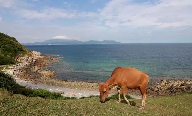 弓背湾山坡上有凉亭可以休憩,经常会遇到出来散步的小牛犊,用深情的眼光望着你,让你都不好意思自己吃独食。