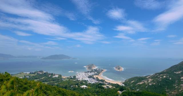 登上万宜水库,一览群山与湾岸美景!浪茄湾是一个清澈的海水呈渐变色向远处延伸,望到深处便是海天浑为一片湛蓝,这段视野开阔的徒步路线,令人全然忘记闹市的烦嚣。