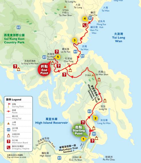 乘车指引:从西贡市中心搭乘出租车到达万宜水库东坝,车程约30分钟;徒步结束后,可搭乘NR29号小巴或出租车返回西贡。行走难度:★☆☆☆☆