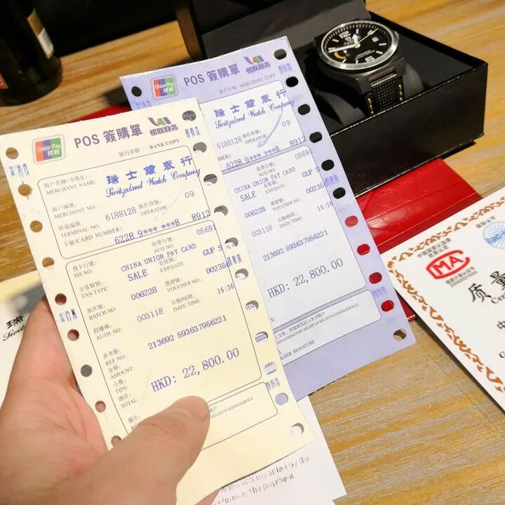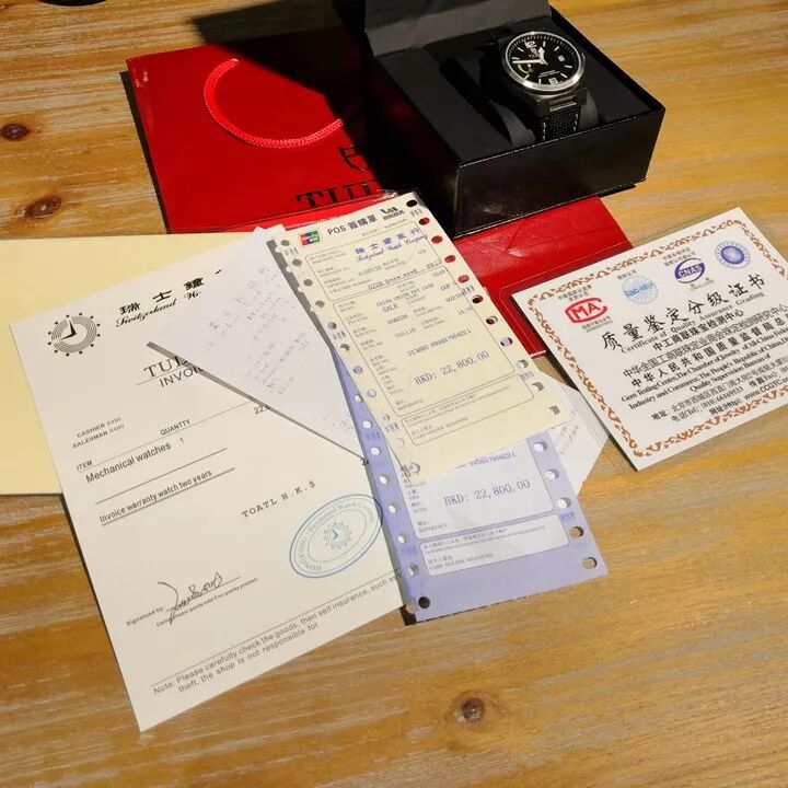 原配的瑞士钟表行小票、机打票据、说明书、礼盒手提袋!细节做够都很到位!