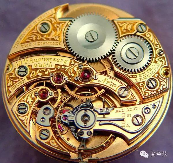 1924年Gruen高露云为了纪念成立50周年推出了Gruen 50th Anniversary怀表,力图打造当时最奢华的时计。限量发售600枚(50年x12月),全12k金夹板,实金轮系,手工雕花,极致的打磨,八方位校正,最奢侈的是使用了21粒天然红宝石和两粒钻石。当时的最低售价500美元,已经可以买辆汽车了。
