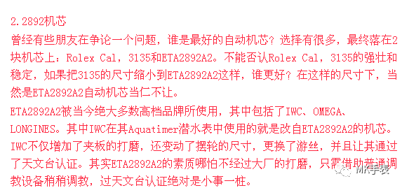 以上就是ETA比较著名的几款机芯了,如果非要拿这几款机芯作比较当然不好比较,不过要说更推荐哪个,那么ETA2892A2还是比较推荐的,所以这里再详细跟大家介绍一下2892A2: