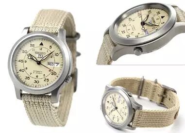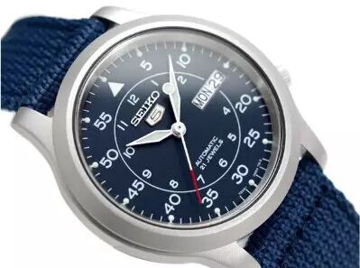 SEIKO第二代帆布机械表可是SEIKO推出的超级经典作品!既然是机械表,就从此不必更换电池,而且SEIKO的设计能力更是让您直接看到表壳内部的机械齿轮喔,直接翻到表背,看到了吗?齿轮组精密结合着,每天分秒不差的运转前进,散发出机械的律动感….的确是让人一看就会精神振奋的经典设计名表!而且表面外圈标明 5, 10, 20, 25数字 内圈标 1,2,4,5..让您看起时间来更方便显示!