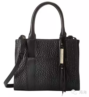 采用纹理皮革,包身设计简单,仅有车缝线的走线装饰,正面滑袋,顶端磁吸搭扣开口,配有皮质流苏挂件,饰有金属LOGO铭牌,包内有一个拉链口袋和两个插袋,包身尺寸为24*19*10cm,肩带可调节,放妹纸的随身物品够了。