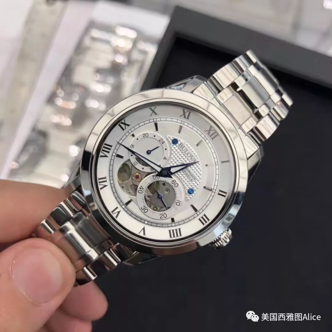 2.宝路华Bulova特价机械表(96A118银色白盘/96A119银色黑盘)