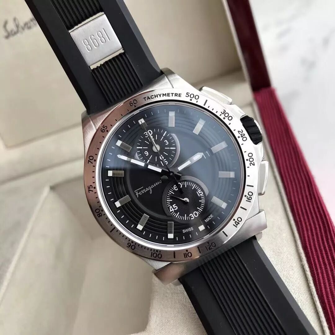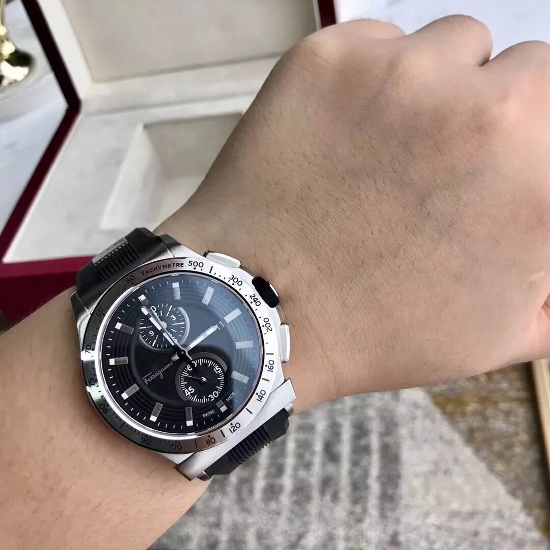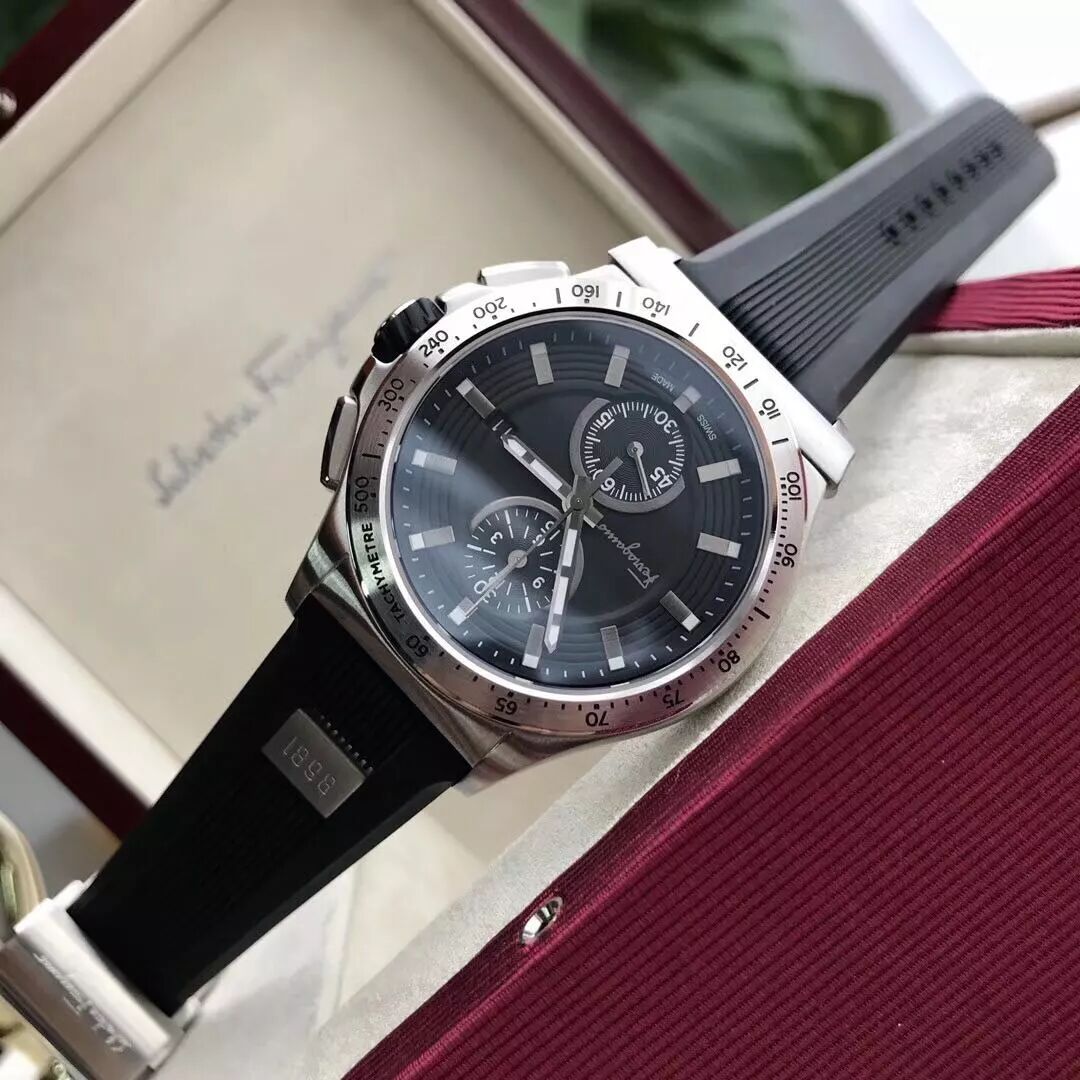 百分百原厂货,专柜订单走完,有幸拿到少量,柜同步上市,表径44mm,316L精钢表壳,经典Gancino造型外圈,双重黑色雕饰纹,荧光时标指针,夜光强劲,原装瑞士计时石英机芯,两年保修