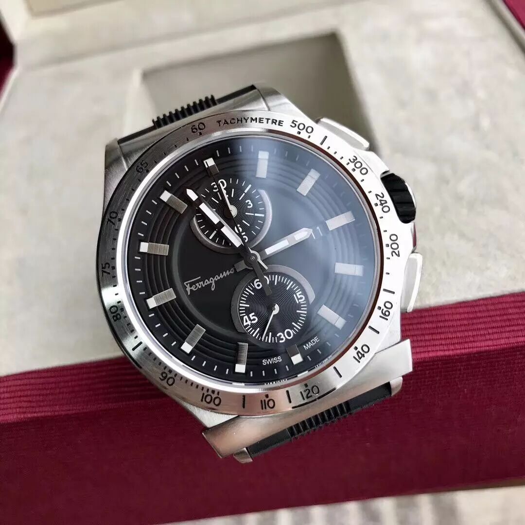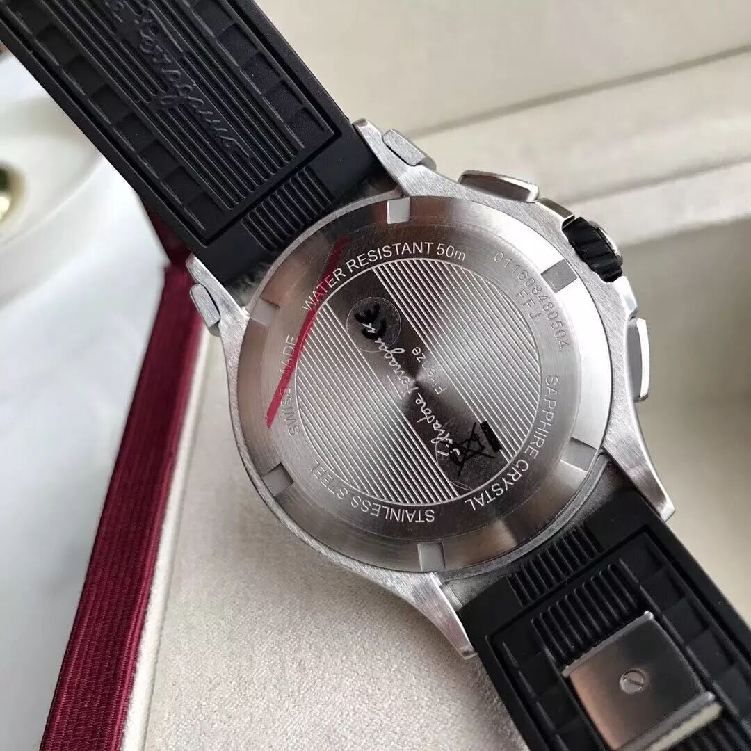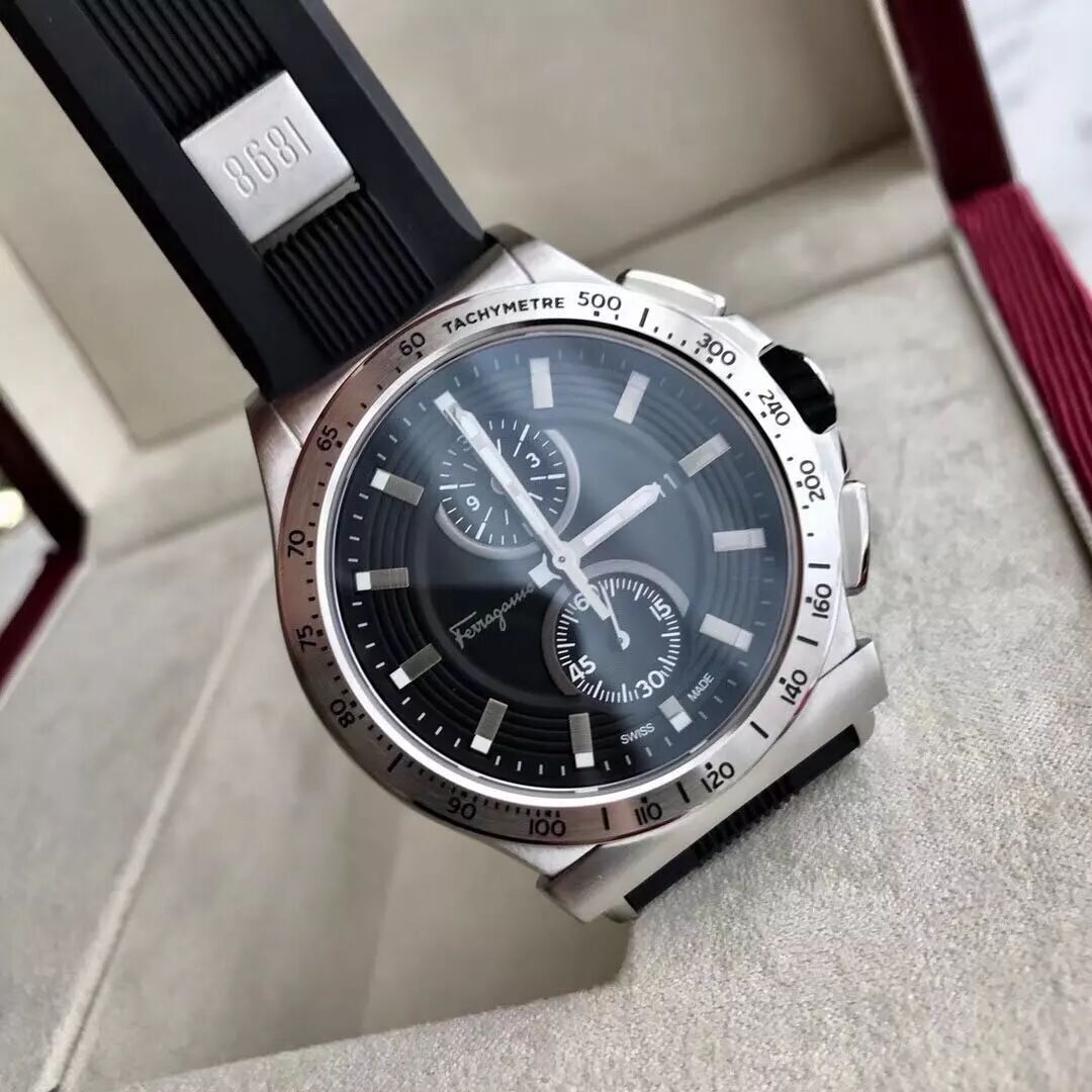 百分百原厂货,专柜订单走完,有幸拿到少量,柜同步上市,表径44mm,316L精钢表壳,经典Gancino造型外圈,双重黑色雕饰纹,荧光时标指针,夜光强劲,原装瑞士计时石英机芯,两年保修