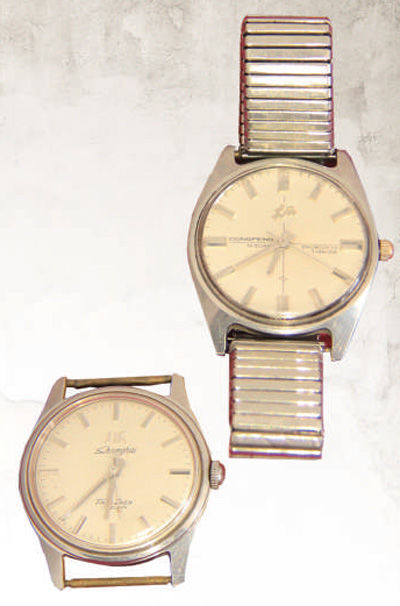 乔启财夫妇的“上海”牌手表和“东风”牌手表。 |