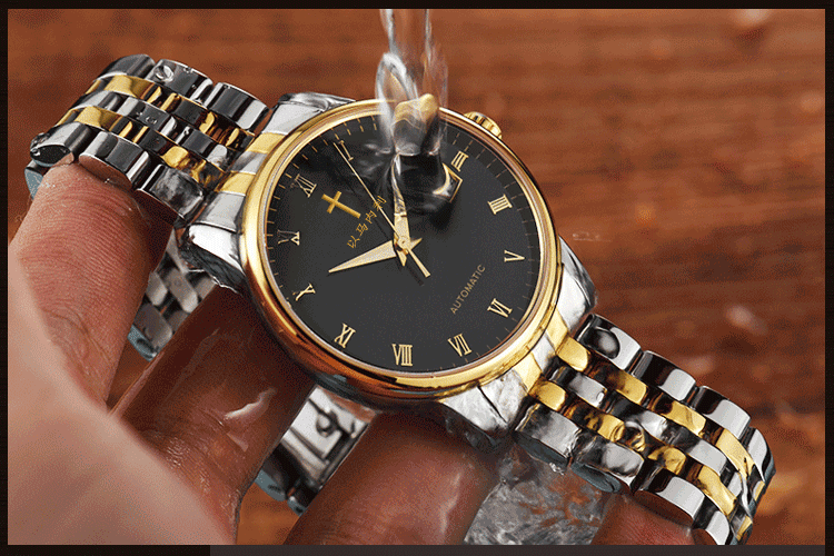 采用进口防水密封胶圈,是关键!不要小看这个密封胶圈,劣质胶圈,会有老化现象,造成几个月防水功能失效,造成表芯生锈!进口密封胶圈,十几年,几十年,不老化,不硬化,防水效果如新,这款表这点绝对可以保证!日常涉水完全没有问题。