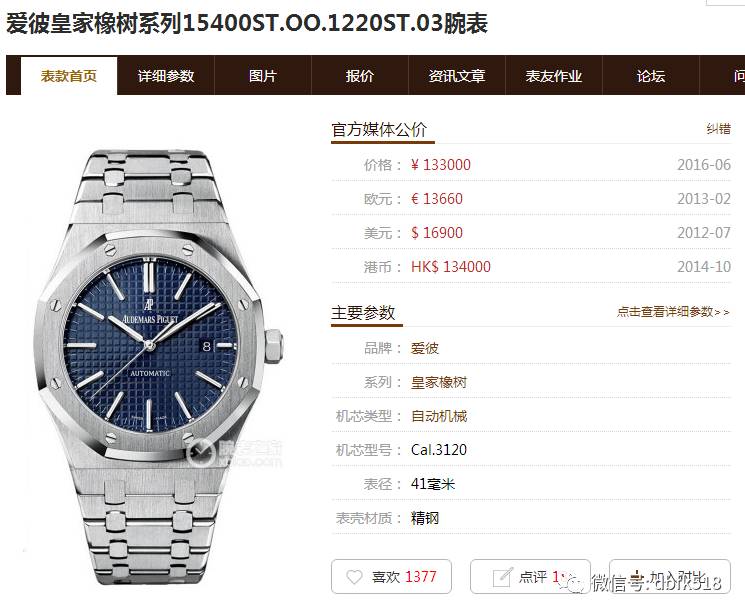 今天跟大家分享的就是JF厂的招牌作品,爱彼复刻表的销量之冠,拥有钢带之王之称的爱彼皇家橡树系列15400系列腕表,这个系列也是挺多款的,大家跟我一起看一下正品数据!
