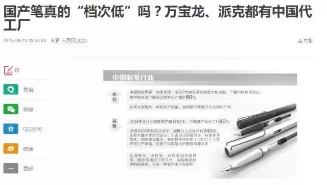 人民网早就有说了!万宝龙在国内是有代工的!并且国内的造笔技术并不低!