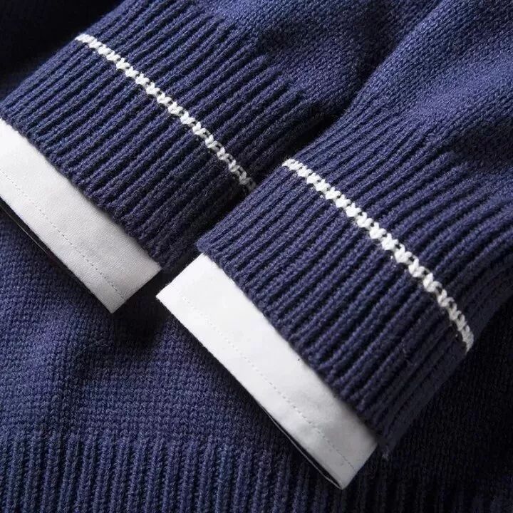 上下采用白色靠边,使得毛衣更具时尚休闲气息