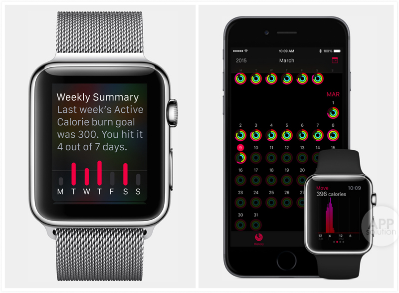 健康与运动是 Apple Watch 最看重的领域之一。Activity app 可以展示你每日的运动量,无论是行走消耗的卡路里,还是锻炼的时间,都可以很清晰地展示。