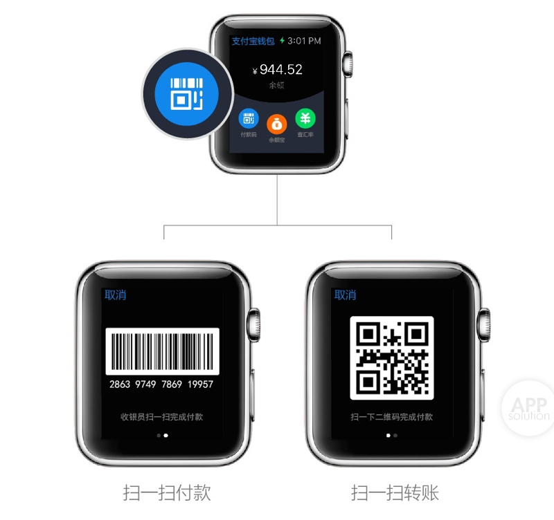 除了微信,支付宝也可以算是国民级的应用了,无线支付无疑给予了我们极大的便利。同样,支付宝也在第一时间适配的 Apple Watch。