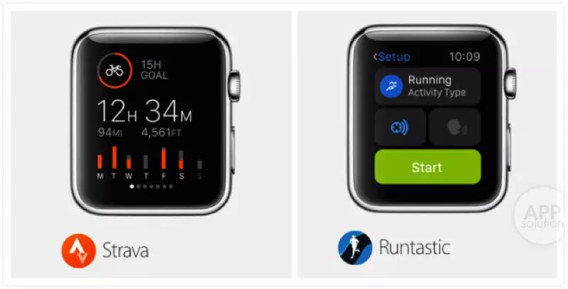 Strava 和 Runtastic 都以全新的方式来记录和展示你的运动信息,无论是跑步还是骑车,通过它们,都可以实时记录爬山高度、平均速度等数据,并显示在屏幕上。通过 Apple Watch,这些运动类的 app 获得了更大的潜力,也使我们离健康的生活越来越近。