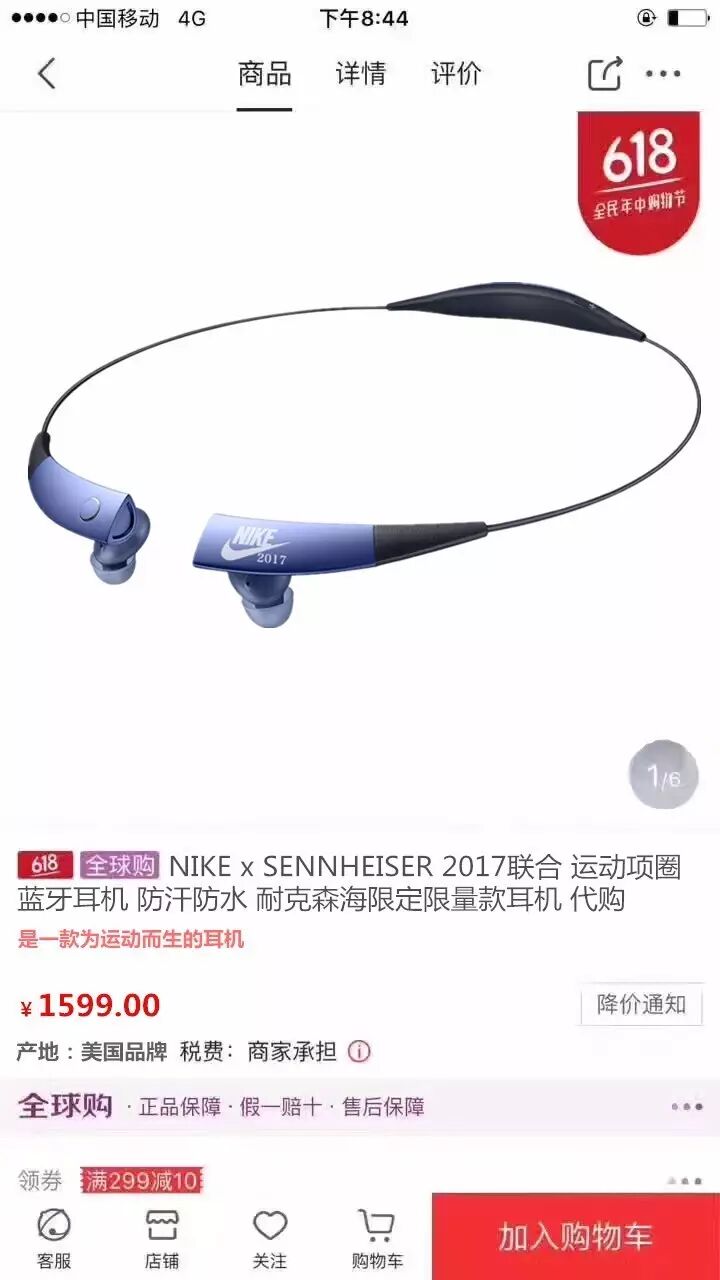 这款耳机由于海关耽误,国内还没上市!但是海外已经开售,官网售价1599!作为限定款运动耳机,海淘全球购都是原价在卖!!