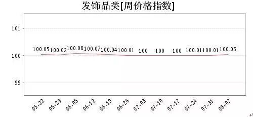 发饰品类本周价格指数为100.05点,走势趋稳。夏季发饰品销售抢眼,客商采购积极。宽边复古百搭发箍、飘带碎花丸子头盘发器、儿童花朵迷你小号边夹、固定刘海无痕万能魔法发贴等产品销量不错,款式简单的各类皮筋发圈行情亦有良好表现;亚克力一字夹、黑色BB夹、合金头扣等产品仍是外销主打,主销非洲地区。