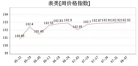 表类本周价格指数102.92点,走势稳定。内销方面,女式帆布石英表、钨钢机械表、水钻表销量突出;电话手表、夜光电子表、早教音乐表等儿童手表销势平稳,暑期零售有所上升。外贸方面,低档成人电子表、工艺表、学生表订单相对较多,主要出口中东、南非地区;学生防水手表、成人电子表等价格中等的产品主要出口拉丁美洲和东盟地区,销量稳定。