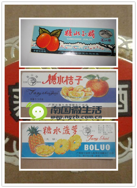 1958年春, 南宁罐头食品厂(以下简称“罐头厂”)成立,成为广西第一家罐头生产企业。1960年,上海公私合营如生罐头食品厂迁到南宁,和罐头厂合并,产品以出口为主。到1987年,罐头厂产量达28522吨,是全国NO.1!成为轻工业部重点骨干企业和广西唯一一家国家级重点罐头厂,拿现在的话来说,就是行业巨头啊~~~罐头厂当时的主要品种有菠萝、荔枝、马蹄、龙眼、柑桔、芒果、三华李、杨桃等具有南方特色的水果罐头,以及青刀豆、蘑菇、豌豆、草菇、甜笋、芦笋、玉米笋、苦瓜等蔬菜罐头,其中菠萝罐头和青刀豆罐头是南宁的优势产品,在国内外市场上久负盛名。小南南有个基友是梧州人,说当时只有生病的时候才能吃一吃南宁罐头厂的嘢,吃完以后身体仿佛就会自带光圈了,那时候小小的他无比期待生病……喂,好了你,这是神马逻辑?