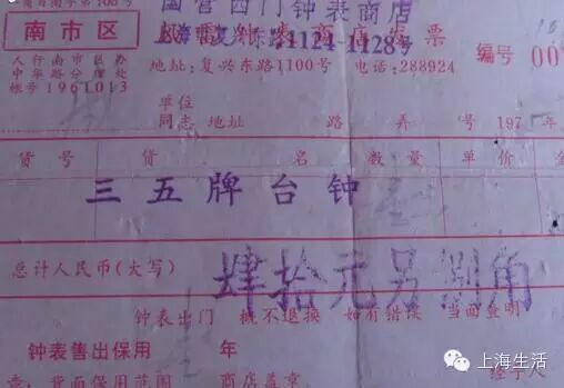 购物凭票证,如今听起来恍若隔世。但在当时是必不可少的。那么,这个票证从何而来呢?一般有两个渠道。一是单位里发的。几百人、几千人的一个单位,有时从上面得到几张诸如手表、自行车之类,当然也包括三五牌台钟的票子,通过抓阄的形式发放下去。二是居委会,偶尔也会得到一两张购物票子。你要同居委会领导、居民小组长搞好关系,先申请,再耐心地排队等待,说不定猴年马月有可能等到那张票证。紧俏程度远远超过现在的新款苹果手机。