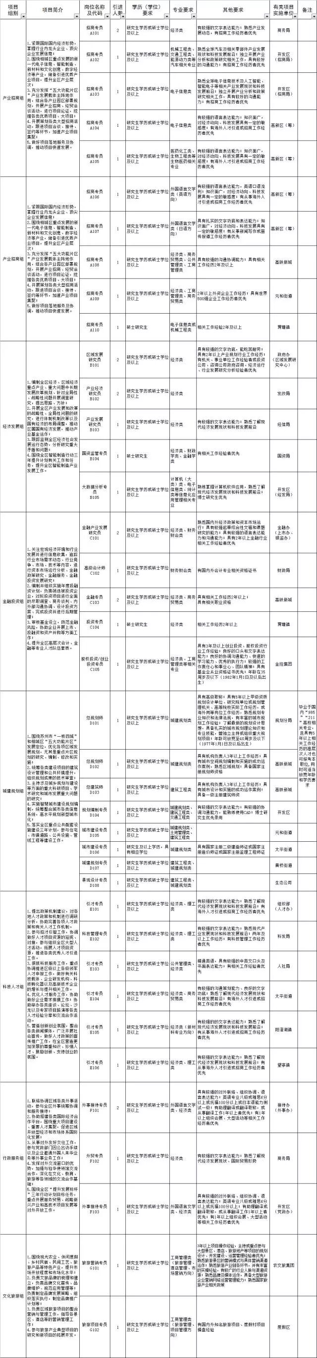 | 招聘岗位 | 简介 | 人数 | 性别 | 学历要求 | 专业要求 | 其他条件 |