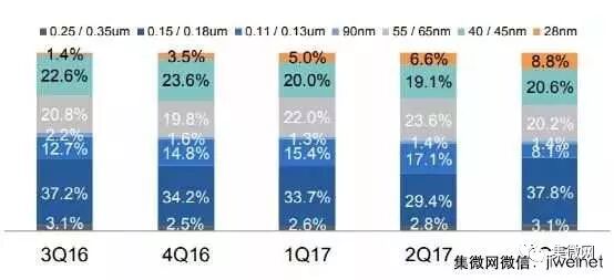 1)Q3各制程营收分布:截止第3季度,28nm带来的营收占比还不足10%。