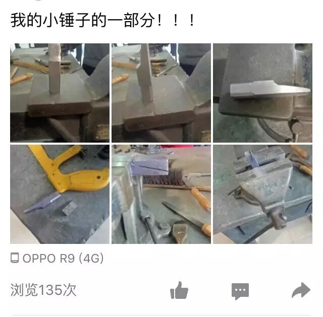 之前还不知道自己体内有这么多力量,(除了开学时把行李箱拎到五楼会有这样的感受)白白嫩嫩的小手活生生把铁块磨成圆头扁嘴的锤头,感谢人类文明,感谢精细化分工。(๑•ᴗ•๑)