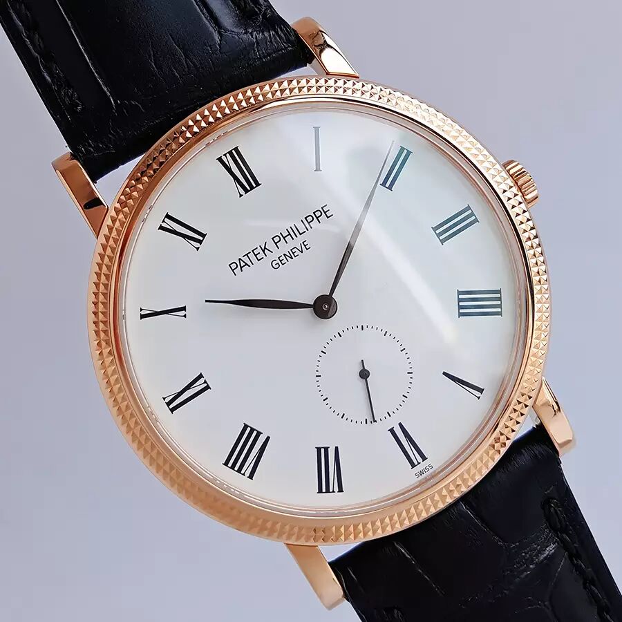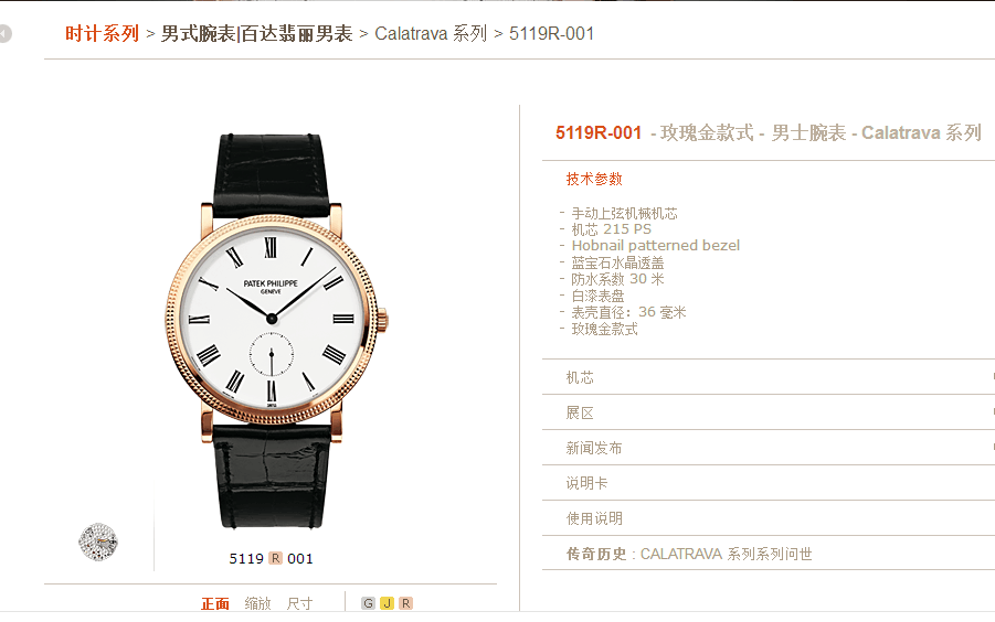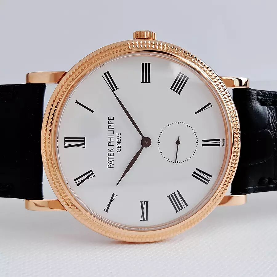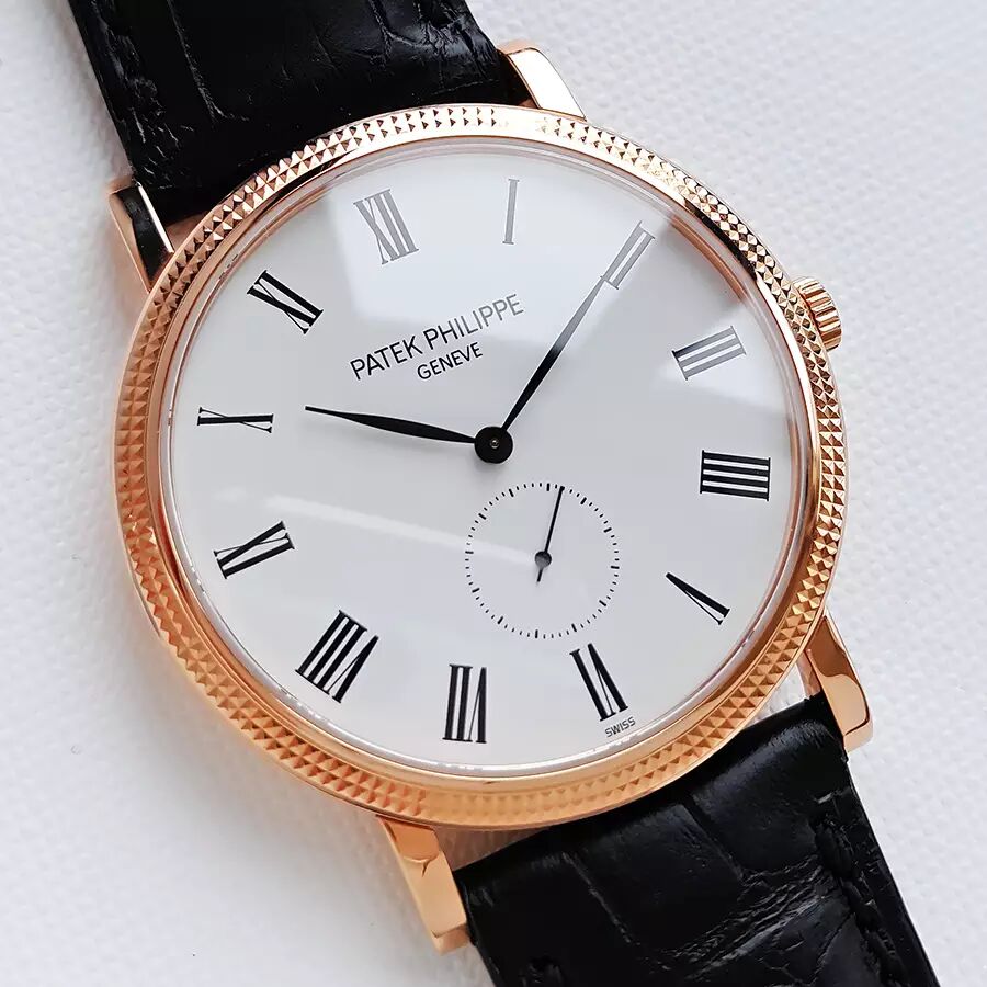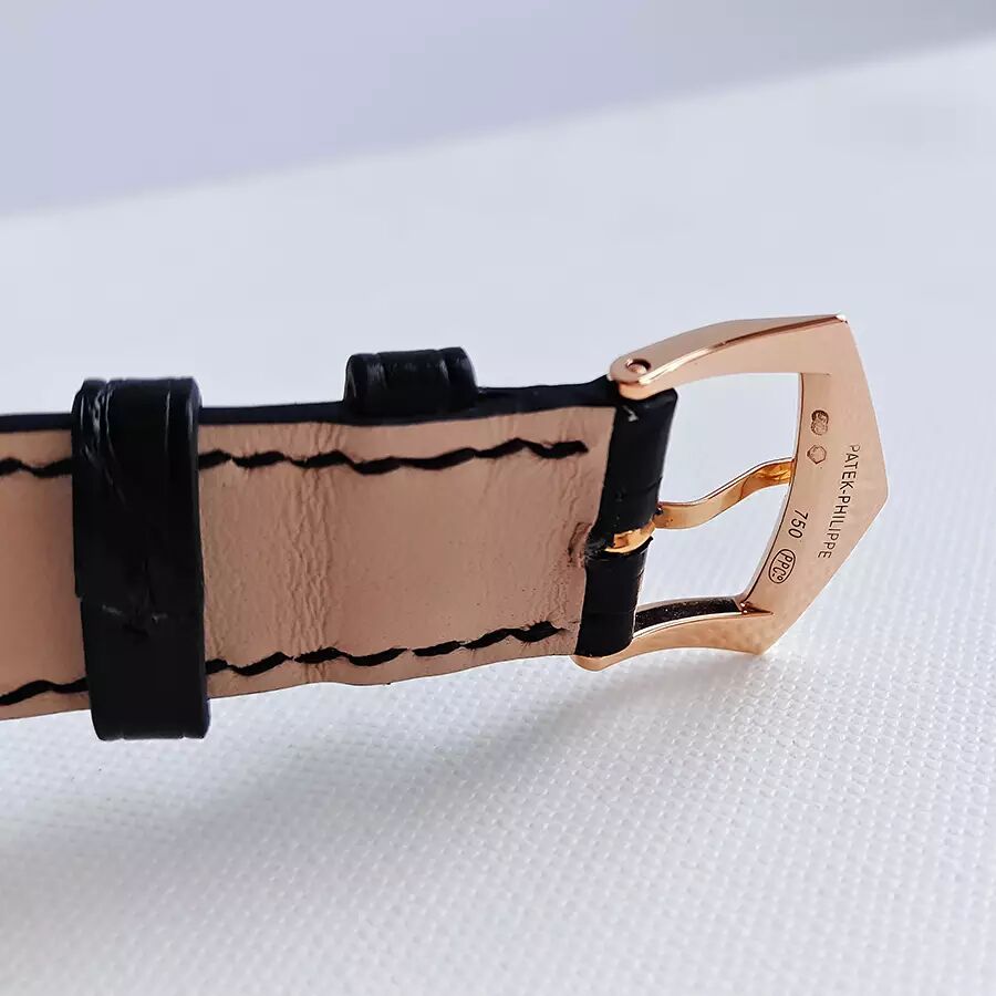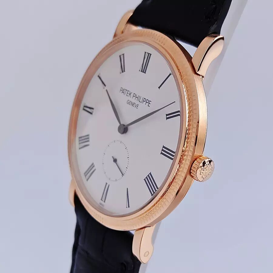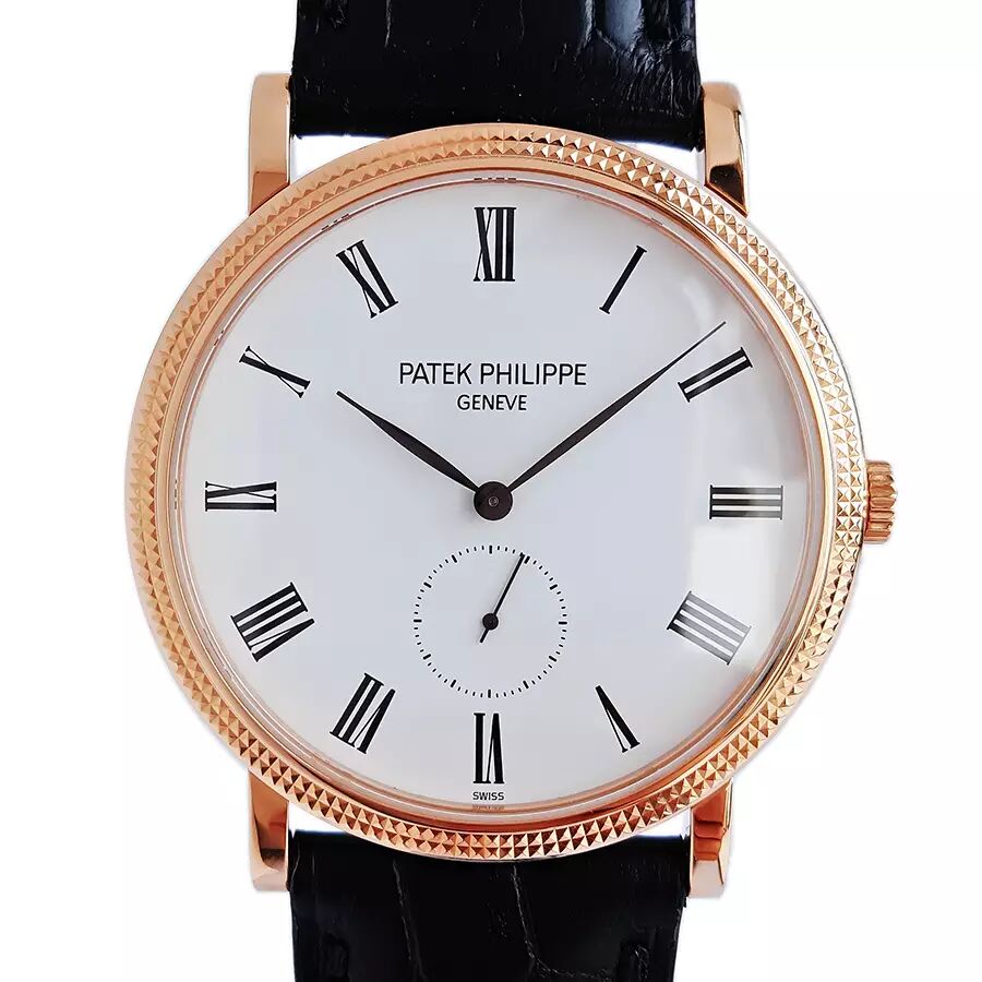 百达翡丽PATEK PHILIPPE经典卡拉卓华系列超薄玫瑰金5119R-001巴黎钉白盘三针男士机械腕表。百达翡丽——当之无愧的王者!(几百年从未间断的家族式经营,手工打造!)表业界的许多品牌每年都在明争暗斗,可它们争来夺去,始终是在争夺第二的位置,从未对第一有过任何奢望!整表全部18K玫瑰金打造,奢华靓丽!曾记得有句广告词:百达翡丽——不但常伴身旁,还是传家风范~!!超薄设计,穿衬衫等正装的绝配,休闲也很棒!蓝宝石水晶镜面及底镜,36MM表径,经典巴黎钉实金表圈+优雅的白漆表盘,黑色罗马字块刻度,灰钢柳叶指针,6点位置小秒盘显示。高贵雅致,简洁大方!超薄手动上链机芯,印有日内瓦印记——需满足对产地、设计、工艺要求极为严格的十二法则(要知道这年头自厂芯就是高价的代名词,更何况是第一的百达翡丽~!)卡拉卓华是最能真正展现百达翡丽风格的标志腕表!原装黑色鳄鱼皮表带,笔直未穿孔,传统18K实金针扣。