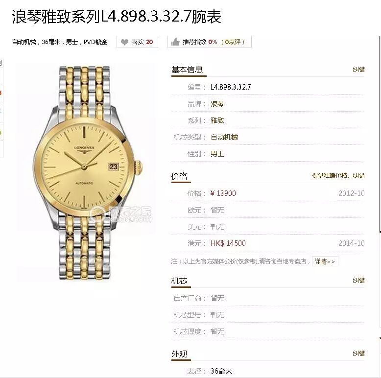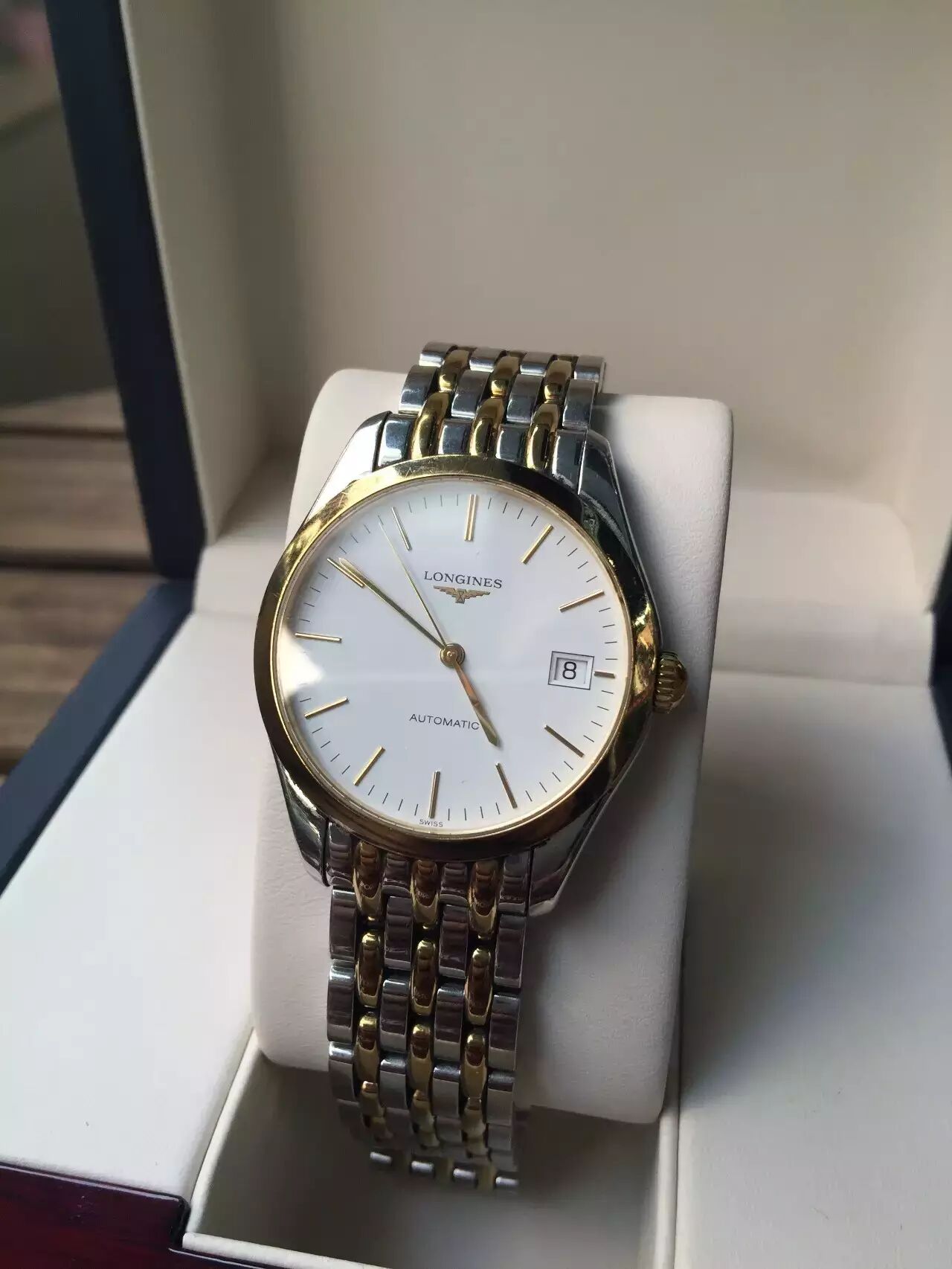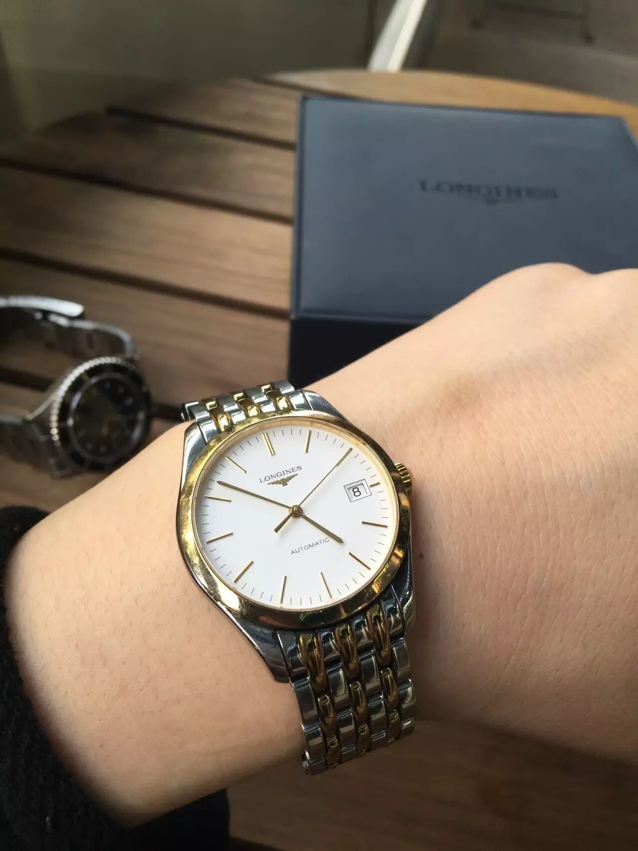 浪琴一贯的优雅超薄设计,间金设计更显档次,成色九成新以上无任何大碰伤