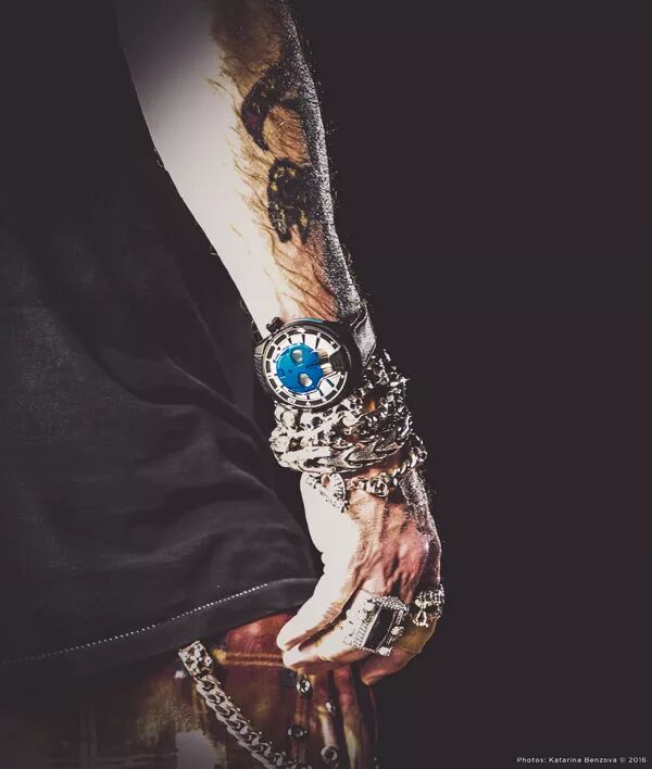 2016年,传奇摇滚乐队Guns N’ Roses主音Axl Rose为澳洲摇滚乐队AC/DC担当主音作巡回演唱时,就曾配戴这款HYT Skull腕表。