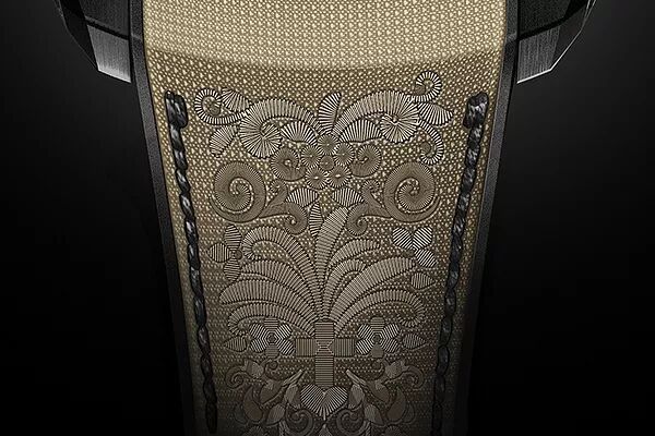 以西伯利亚猛犸象牙作为表盘的材质,骷髅型以及花纹,经过特别训练的工匠细心操作雕刻而成。