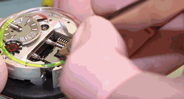 这就意味着,从机械里的齿轮到支架齿轮的轴承、螺丝钉等细小零件,都必须经受住无数次的咬合磨擦而不变形,才能保证钟表报时的准确。