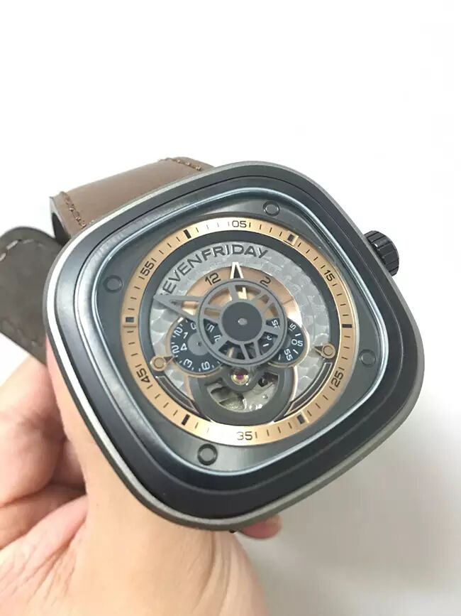 Sevenfriday 是英国制造商 Watch Anish 和 瑞典设计工作室 Studio Divine 合作推出的品牌,设计灵感来源于老式的显像管电视机的外型。而名字则代表着人类至高的梦想,每周都有7个星期五,一周都充满着闲适与快乐。等一下,这不对啊老师,发达资本主义国家已经提前进入了工四休三的先进生产力模式了么……