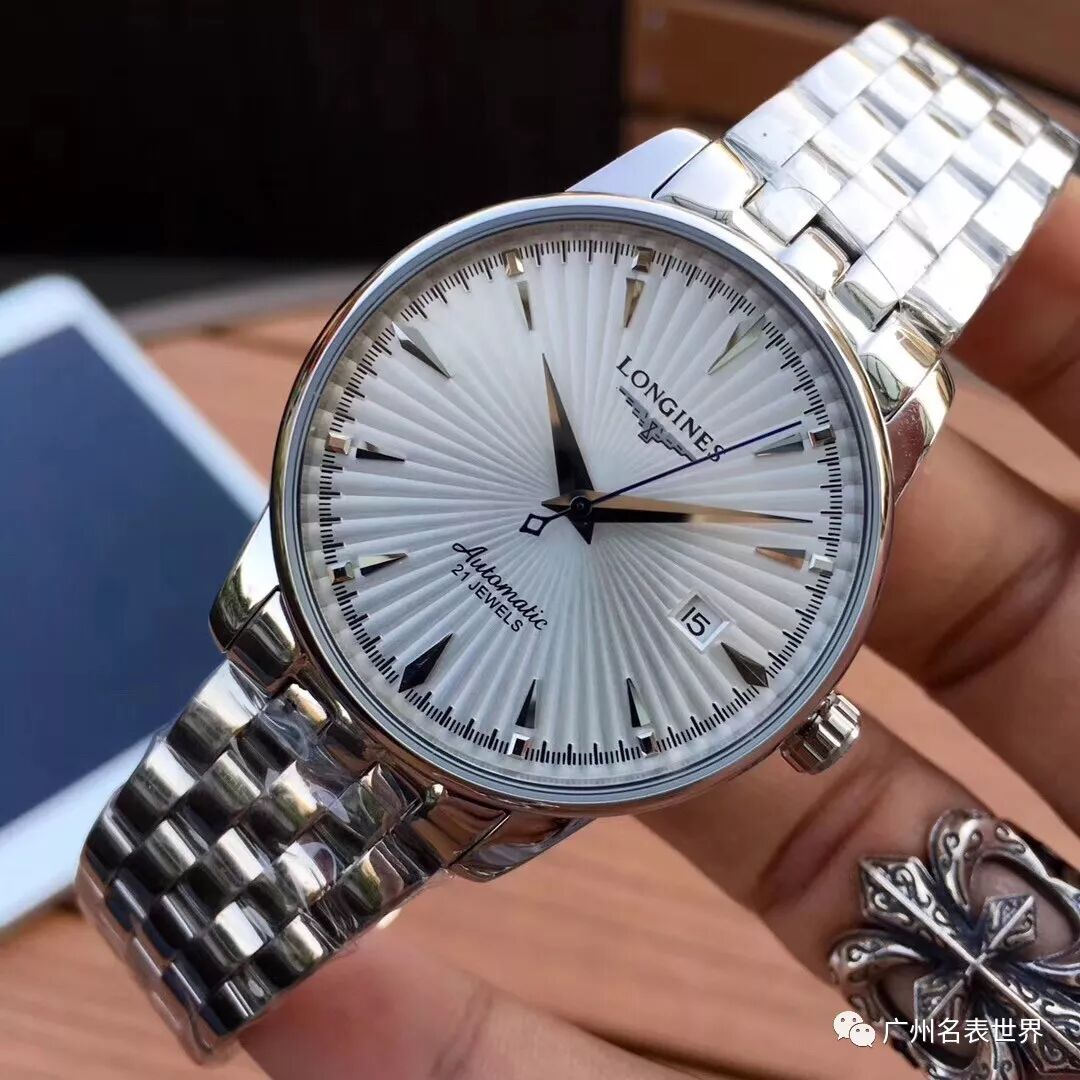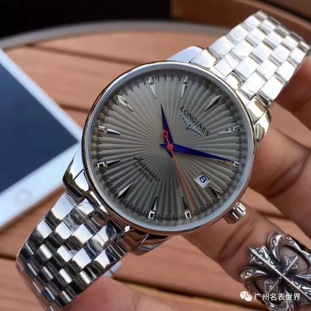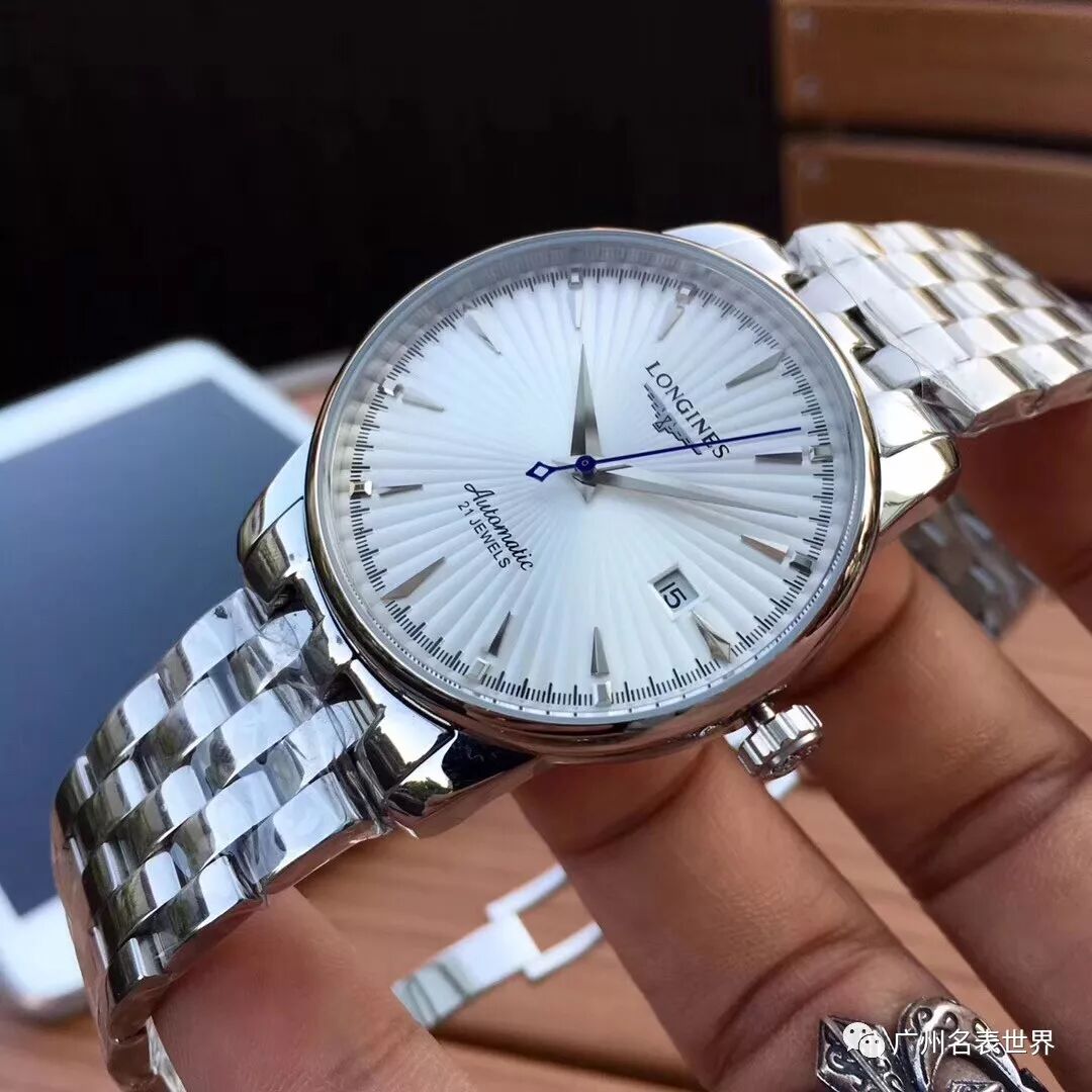 浪琴-L。ONGINES‼️大三针设计????单日历爆款????男士精品腕表⌚️内置全自动机械机芯 采用进口蓝光矿物质玻璃 尺寸42mm*10mm 备有牛皮表带 实心钢带可选
