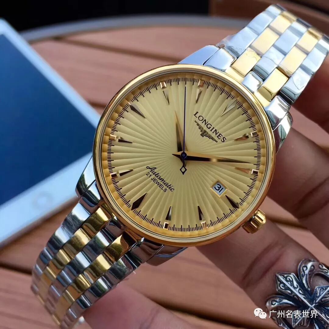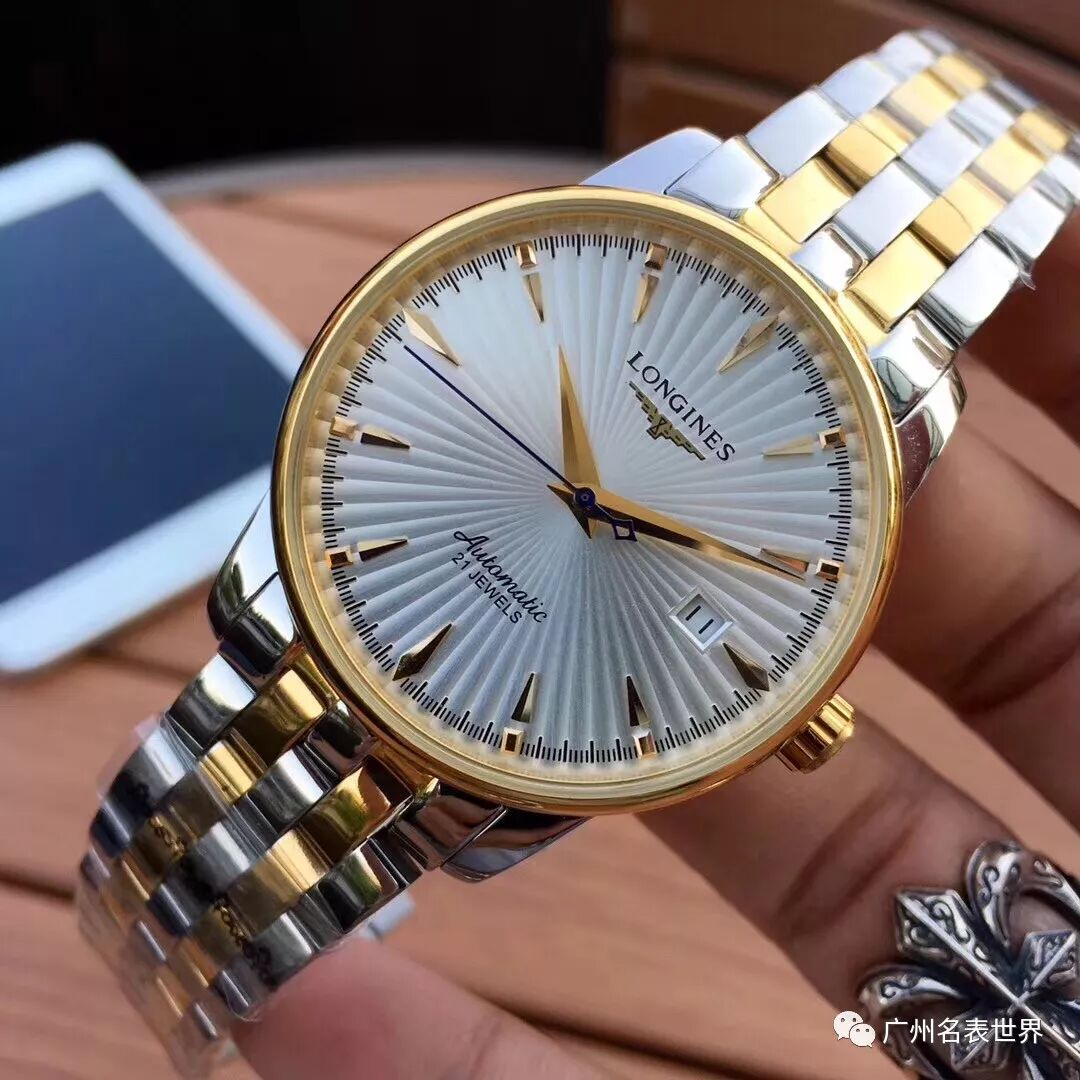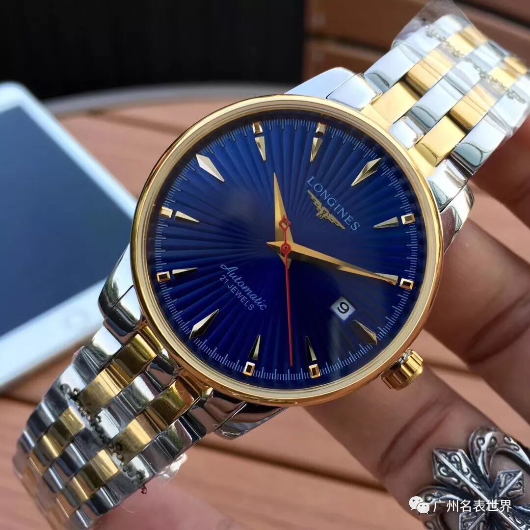 浪琴-L。ONGINES‼️大三针设计????单日历爆款????男士精品腕表⌚️内置全自动机械机芯 采用进口蓝光矿物质玻璃 尺寸42mm*10mm 备有牛皮表带 实心钢带可选