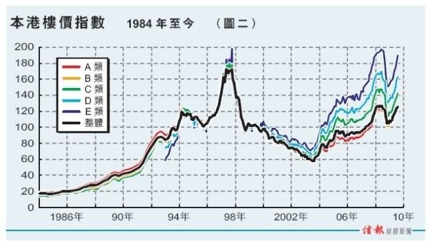 香港的房价一路飙升,到1997年达到峰值,然后楼市泡沫破裂。