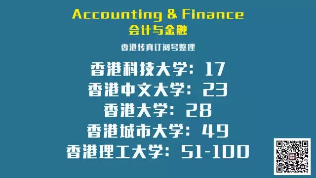 香港的热门学学科之一——会计与金融,有4所院校进入前50。