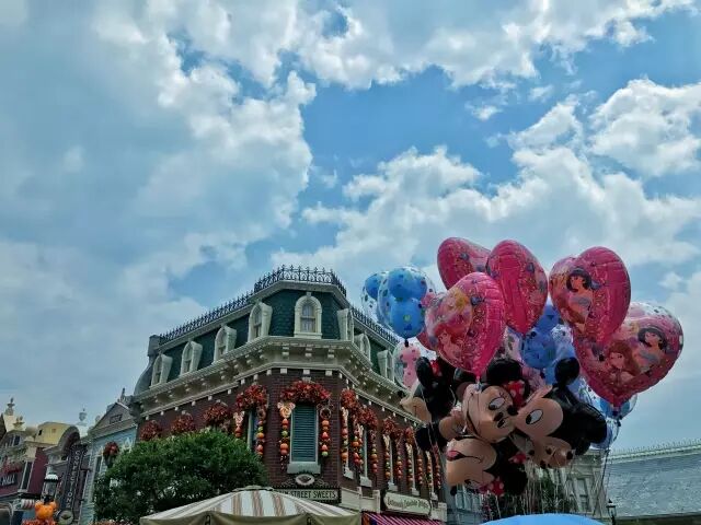 比如上面为了糖果念咒语,再比如在美国小镇大街上遇见“米奇Halloween玩转大街派对”