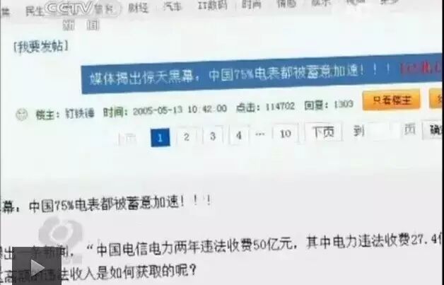 这个是2005年,说中国75%的电表都被蓄意加速的新闻,应该和这篇文章是一起出现的,咱们先看看央视记者调查的过程和结论吧。