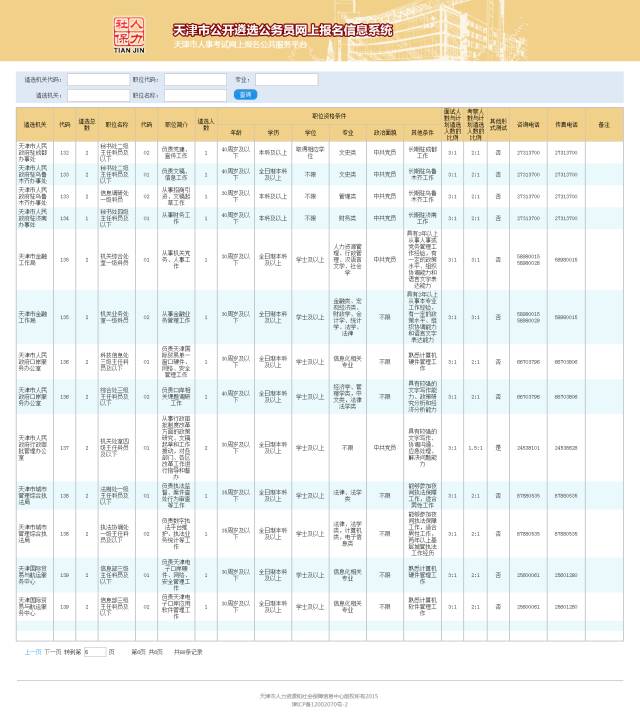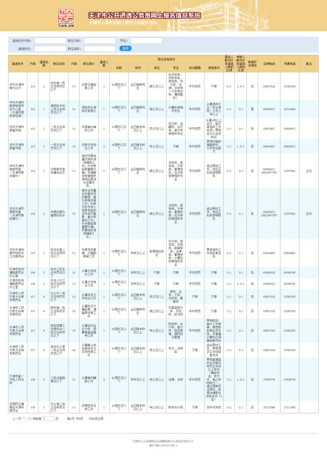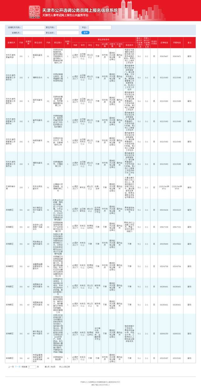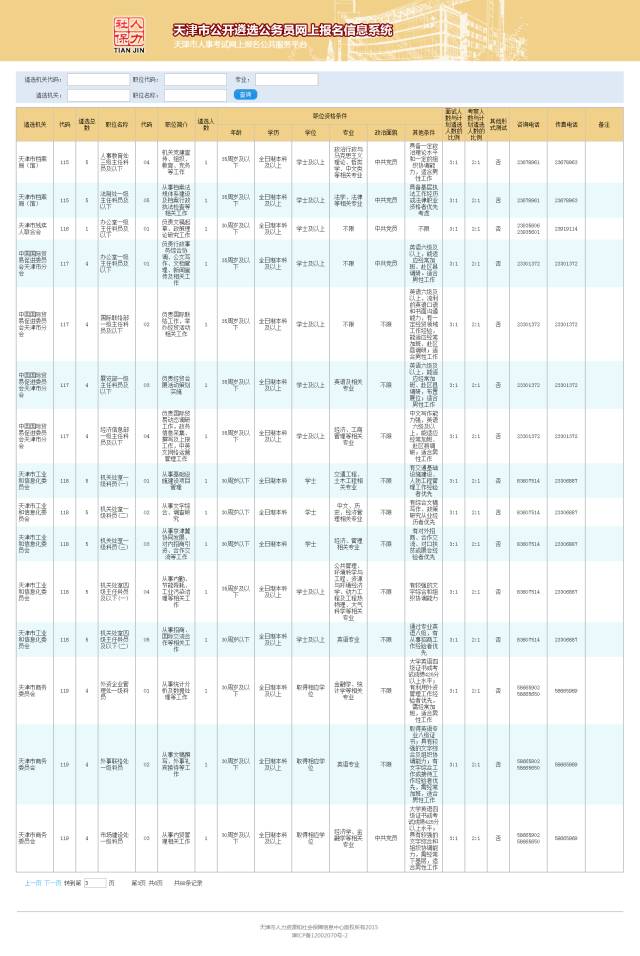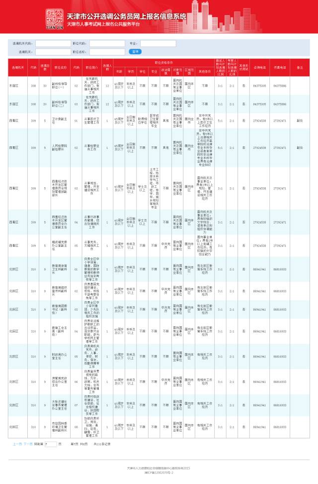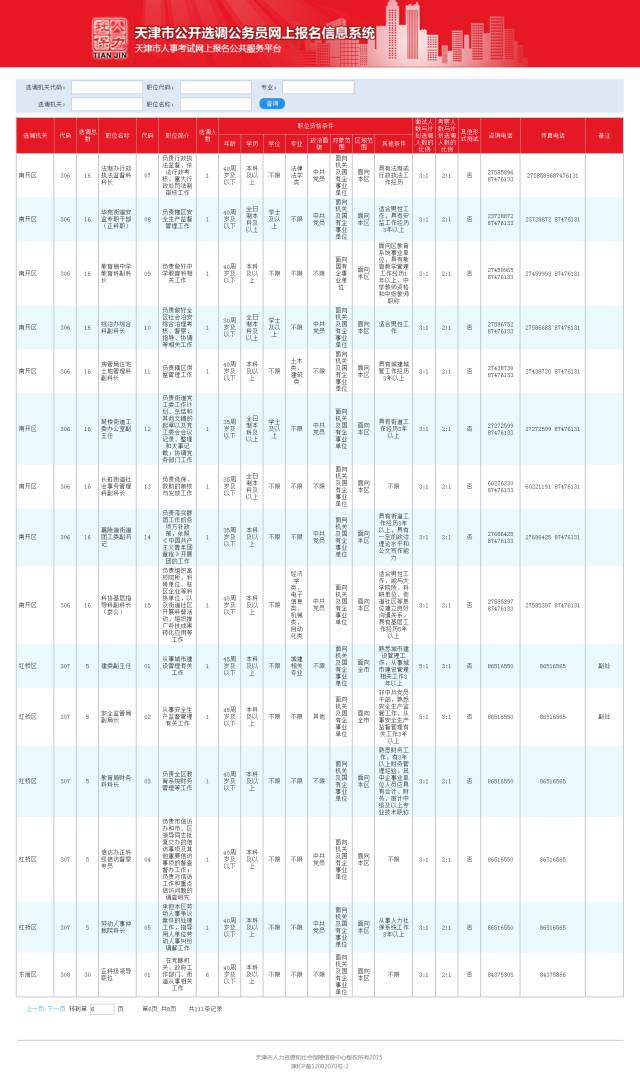 报考人员从2017年11月10日起,登录市人力资源和社会保障局网站(网址:http://www.tj.hrss.gov.cn),查询职位及资格条件等情况。咨询有关事项可通过公布的电话与遴选或选调机关联系。