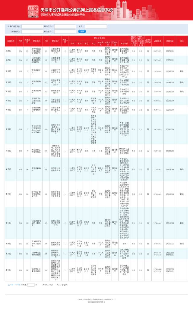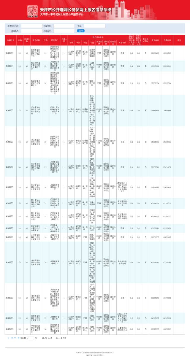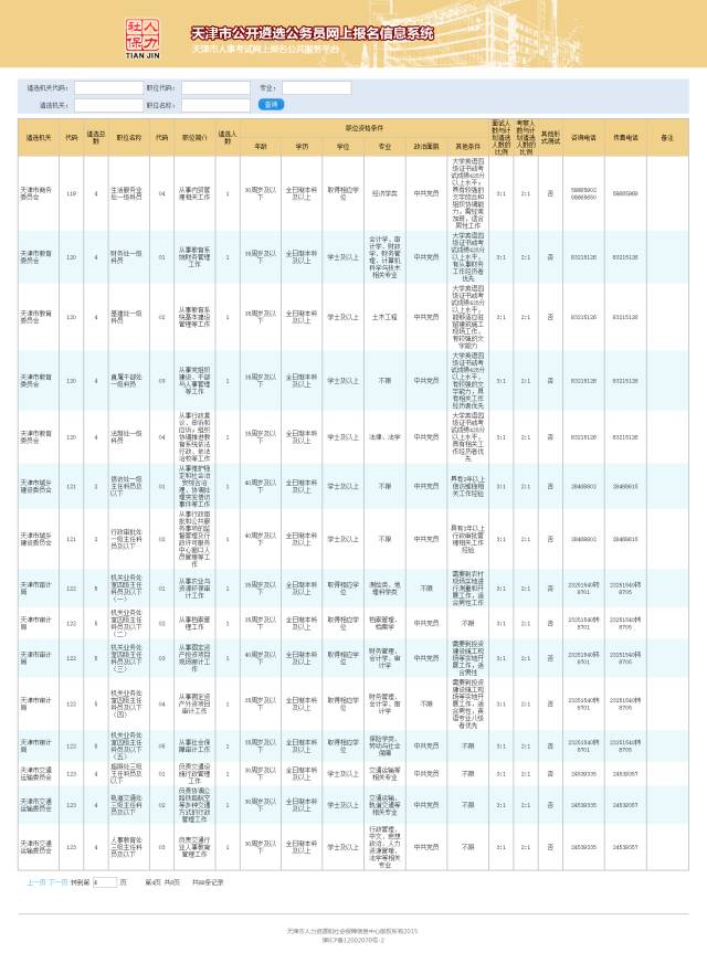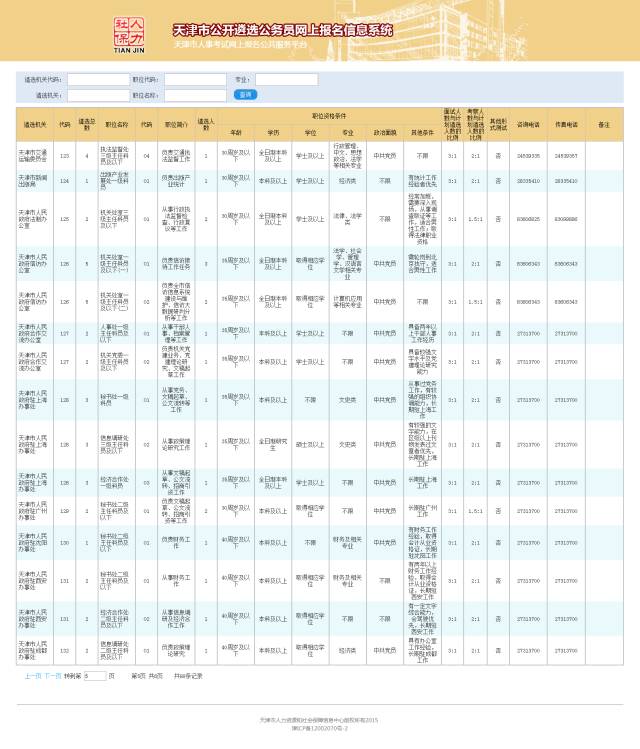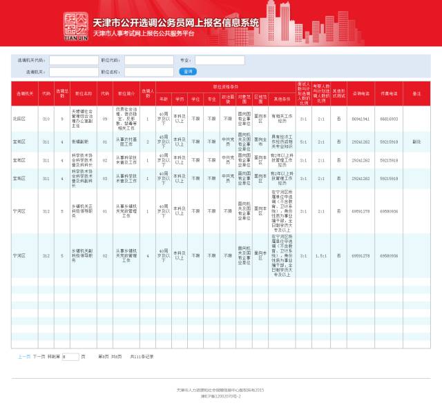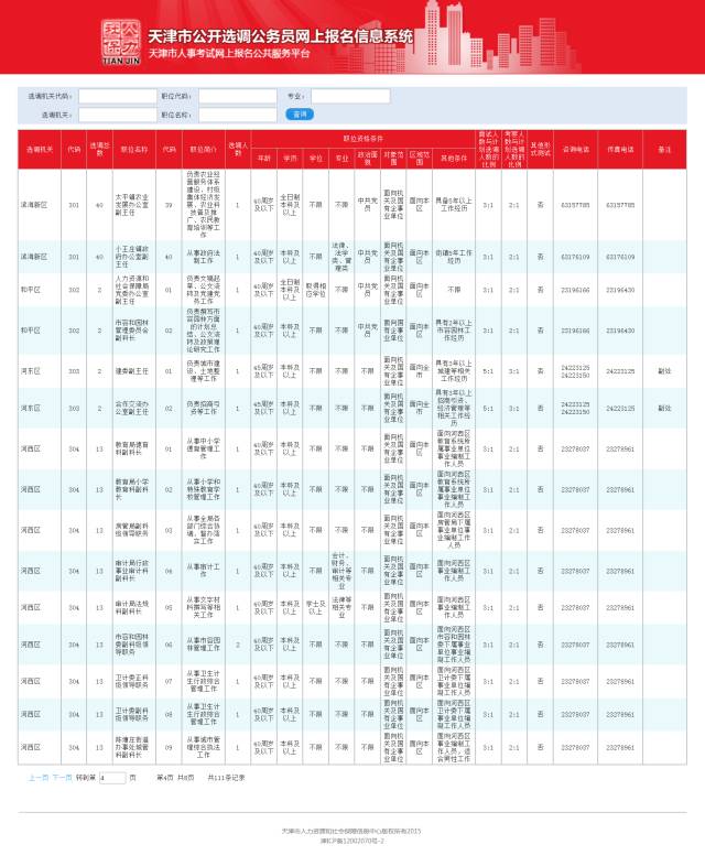 报考人员从2017年11月10日起,登录市人力资源和社会保障局网站(网址:http://www.tj.hrss.gov.cn),查询职位及资格条件等情况。咨询有关事项可通过公布的电话与遴选或选调机关联系。
