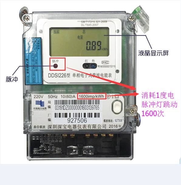 智能电表上的脉冲灯闪烁代表线路有负荷通过。脉冲灯闪烁频率随用电负荷大小变化,用电负荷越大,闪烁越快。如果电表面板上标注有“1600imp/kWh”,表示客户消耗1度电能,脉冲灯闪烁1600次;如果标注为“1200imp/kWh”,表示客户消耗1度电,脉冲灯闪烁1200次。